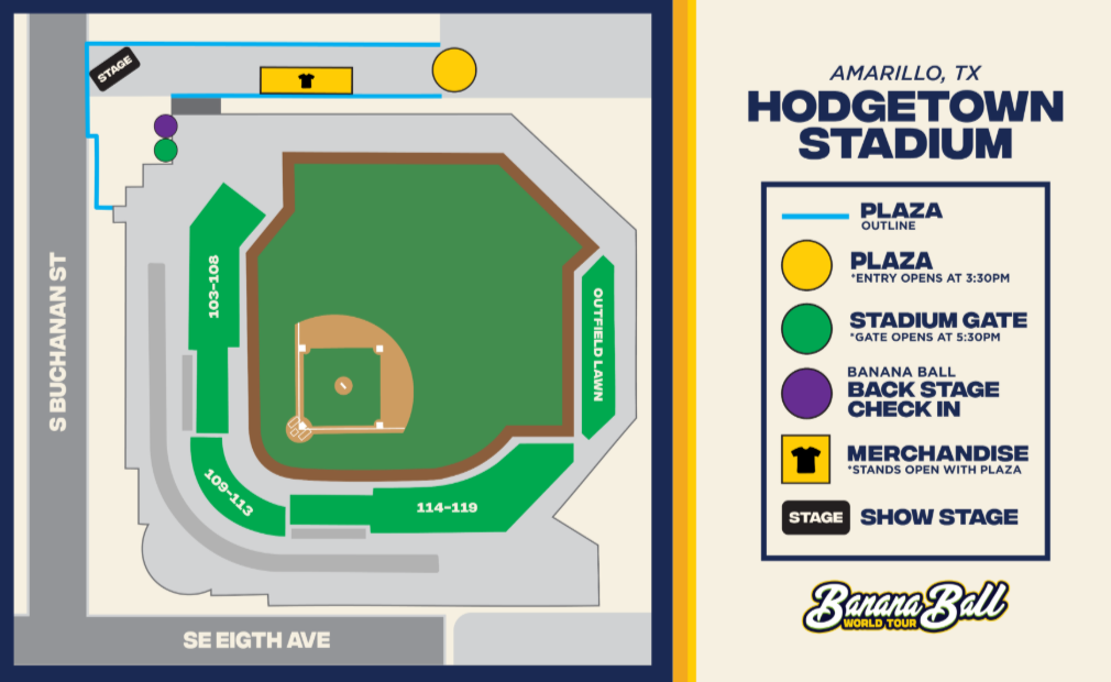Check In: On game day, you will need to check in for the Banana Ball Backstage Experience. We recommend you are checked-in at least 30 minutes before your start time. Further information about where to check in will be shared here and emailed to you closer to game day.