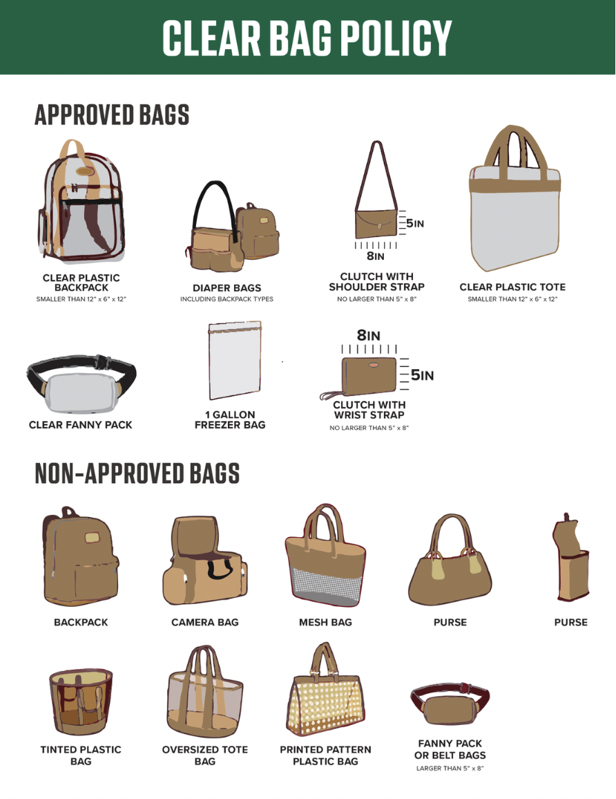 Bag policy : All bags must adhere to the “CLEAR BAG POLICY” and are subject to search upon entry and within the ballpark. Prohibited items should be disposed of in the trash or recycle containers or may be returned to one’s vehicle.