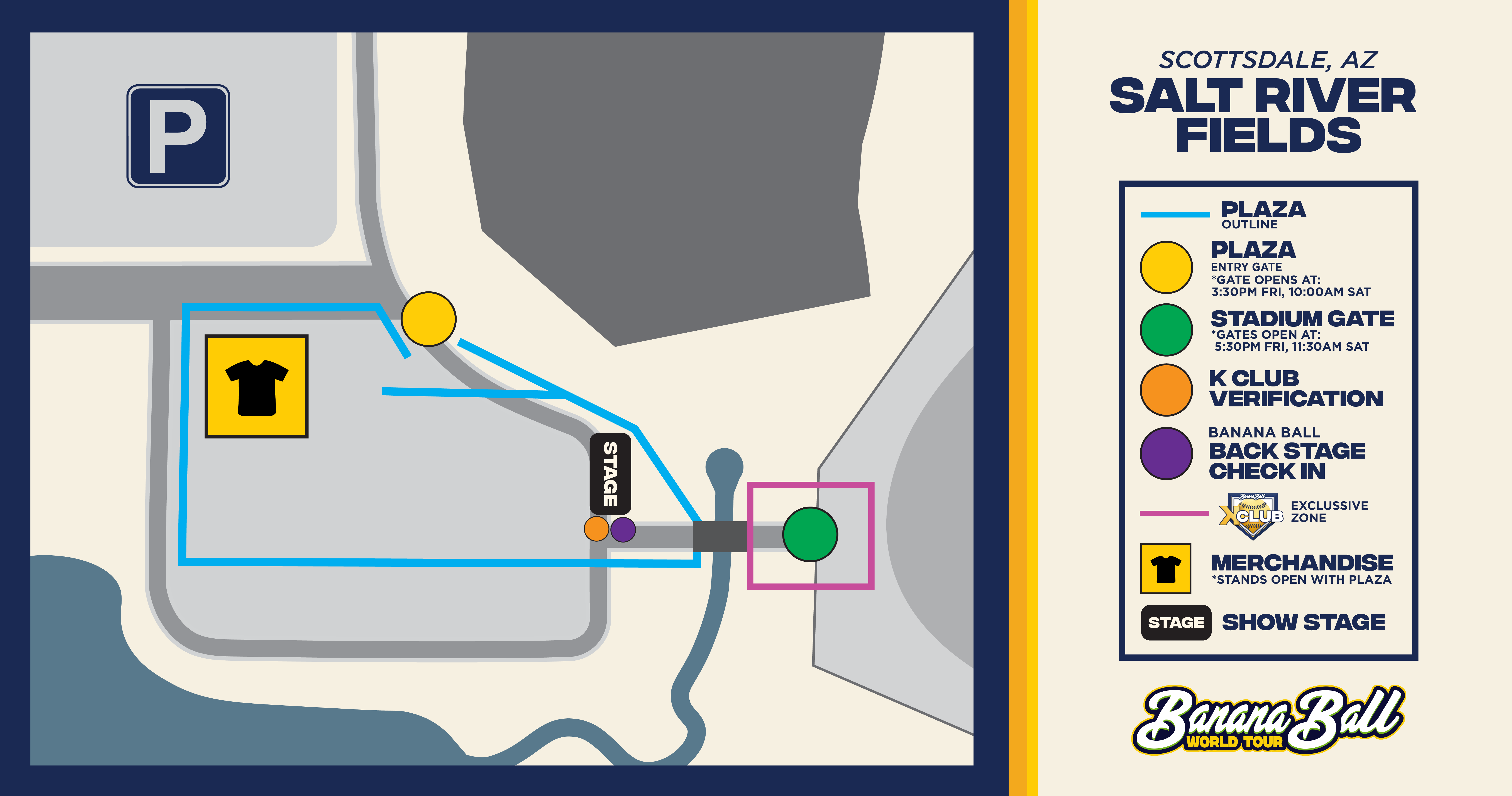 Check In: On game day, you will need to check in for the Banana Ball Backstage Experience. We recommend you are checked-in at least 15 minutes before your start time. Further information about where to check in will be shared here and emailed to you closer to game day.